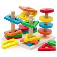 − Juguete de tren con fichas de encaje de figuras geométricas permiten al niño dominar los estímulos visuales de forma y color.